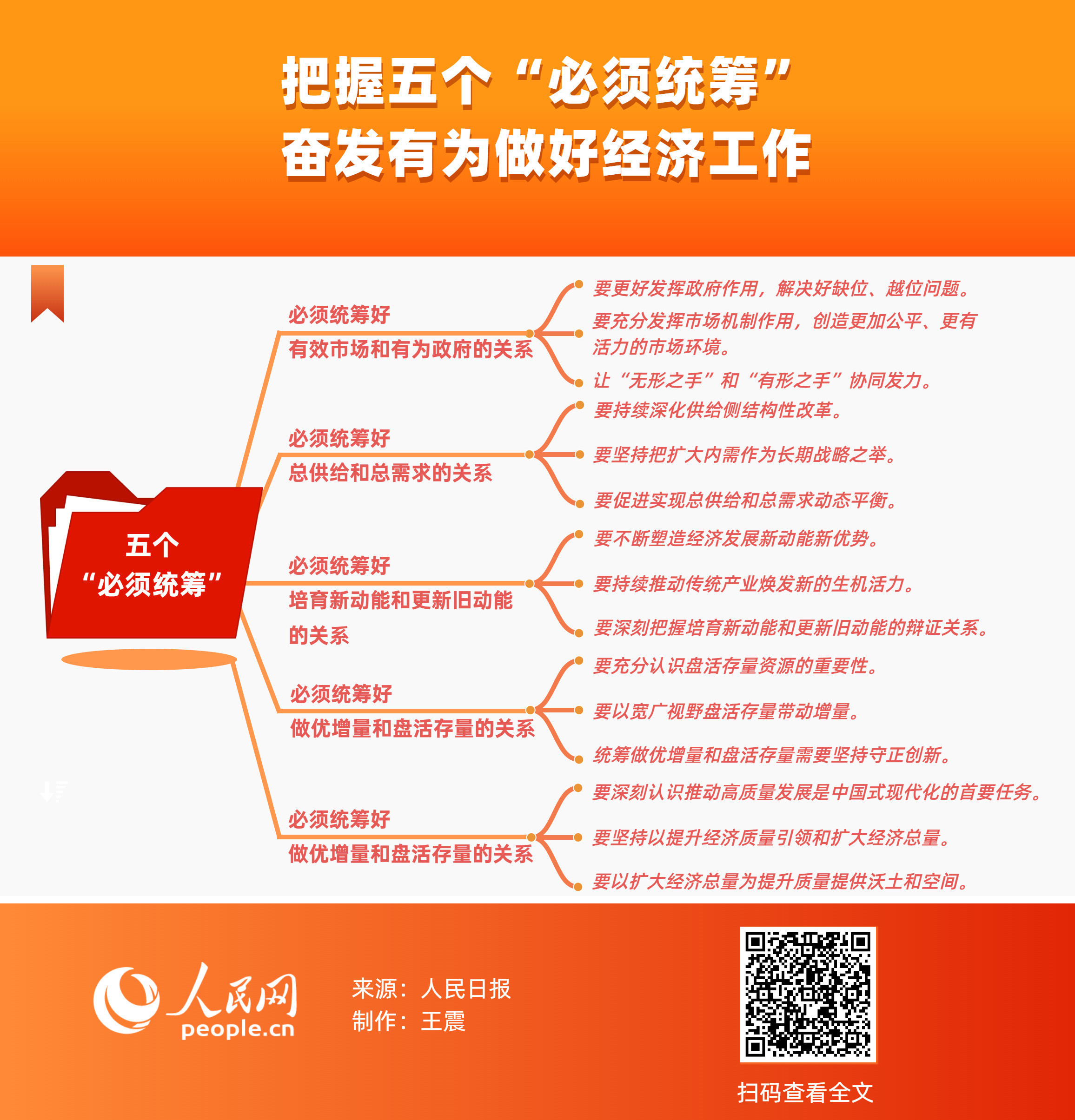 2024年12月举行的中央经济工作会议提出了五个“必须统筹”的重大要求,为我们进一步做好经济工作、推动经济高质量发展提供了重要遵循。1月23日,人民日报理论版刊发钟才文署名文章,权威准确解读五个“必须统筹”的深刻内涵。人民网制作思维导图带您一图读懂。